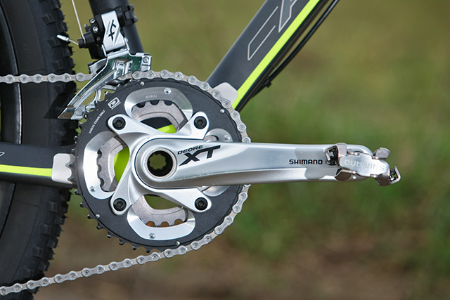 Kliky nesou dvojici převodníků s 28 a 40 zuby, zatímco desetipastorková kazeta disponuje klasickým rozsahem 11-36 zubů. Smyk, páčky, přehazovačka a rovněž tak i brzdy s dvojicí 6" kotoučů nesou na sobě známé logo XT.