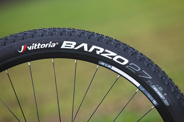Zapletená kola jsou naopak v kompletní režii Authoru a jeho Xenon dvaatřicetiděrových nábojů a černých Helion Pro ráfků, na kterých jsou obuty zbrusu nové pláště Vittoria Barzo kevlar 27,5x2,10".