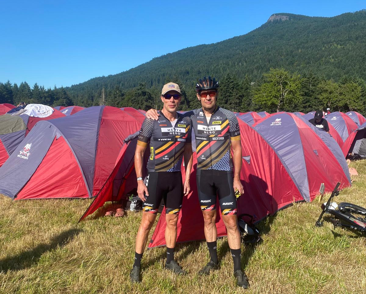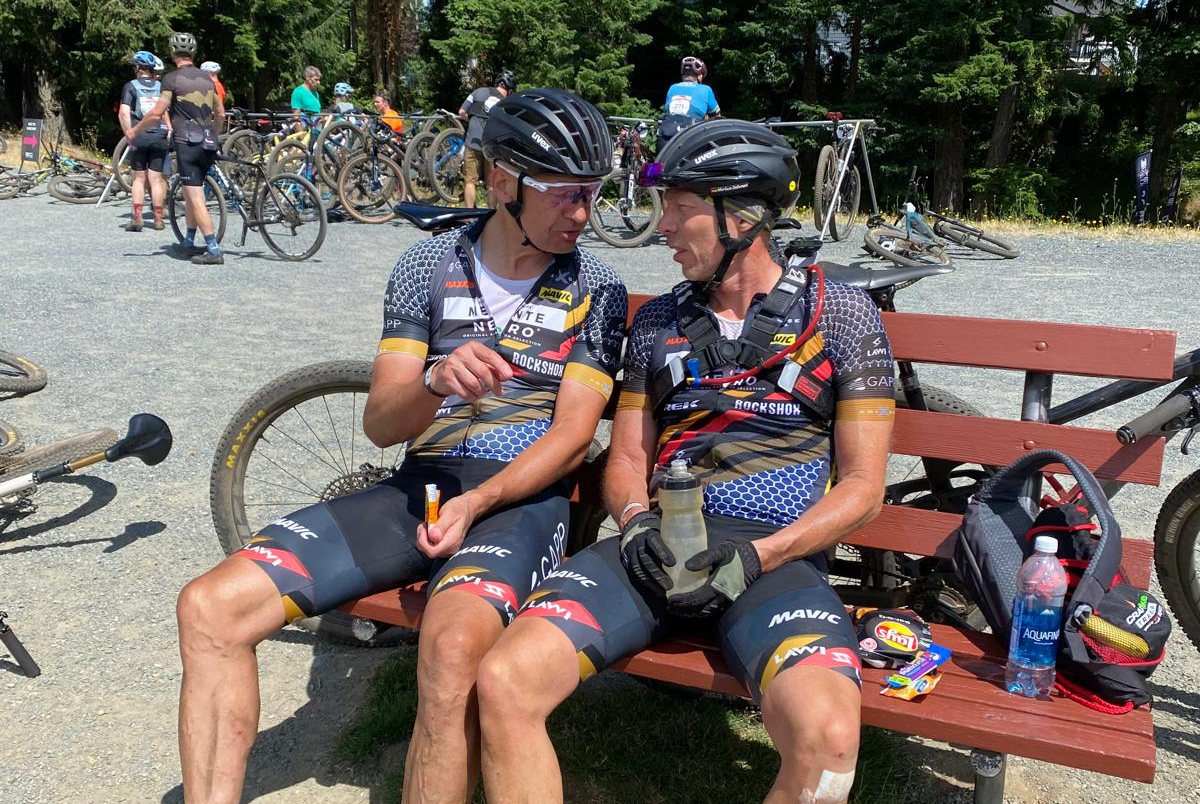 Poslední hodinu už jsme toho měli fakt dost. Jedeš na trailový etapák a chceš, aby už ty šílené traily skončily. No není to komický? Poslední hodina byla více méně dolů, ale za odměnu to nebylo. Stovky obnažených kořenů, místy bych to nazval rolety kořenů, to zkrátka nechceš. Bolí tě dlaně, zápěstí, předloktí, ramena, za krkem… co jsem ještě nevyjmenoval? No ale pak se najednou trail otevřel do širší cesty a co se nestalo; byli jsme zpátky na bázi, projeli cílovým koridorem a konstatovali, že jsme opět přežili. Tělo je zdevastované, jako kdyby mě někdo zavřel do pračky a zapnul ždímání na 1000 otáček.