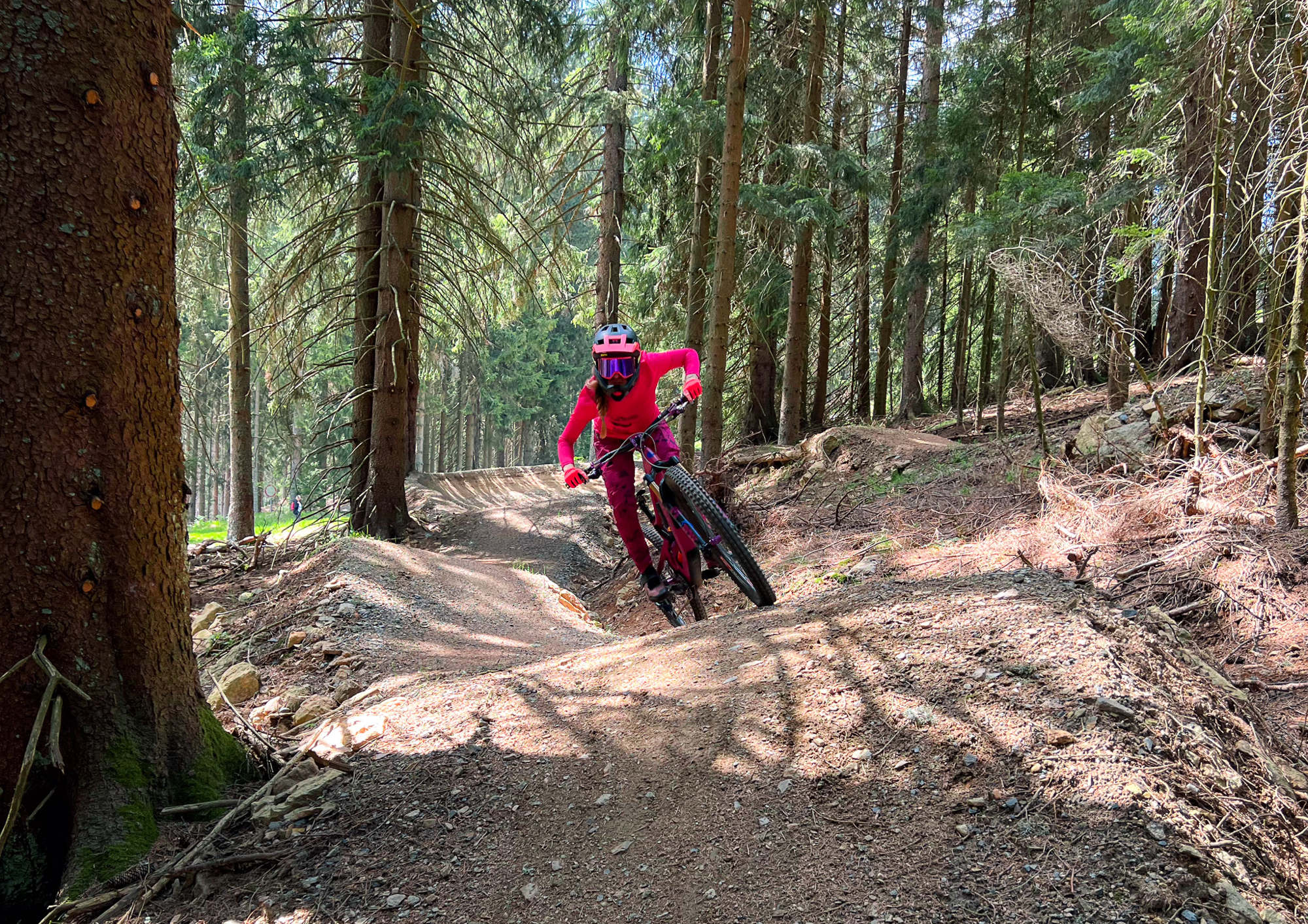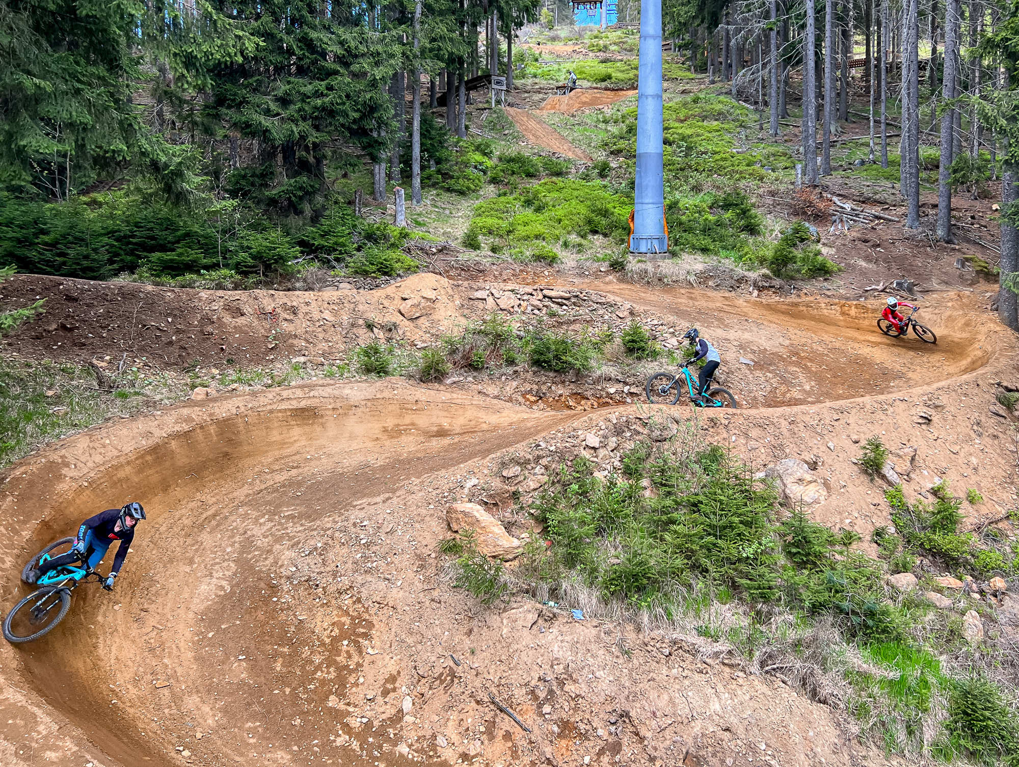 Červená trať Black Friday momentálně představuje až na pár úseků relativně vyhlazený trail se spoustou klopených zatáček, které jsou převážně široké a pěkně otevřené, takže se dají projet velmi pohodlně a zároveň i svižně.