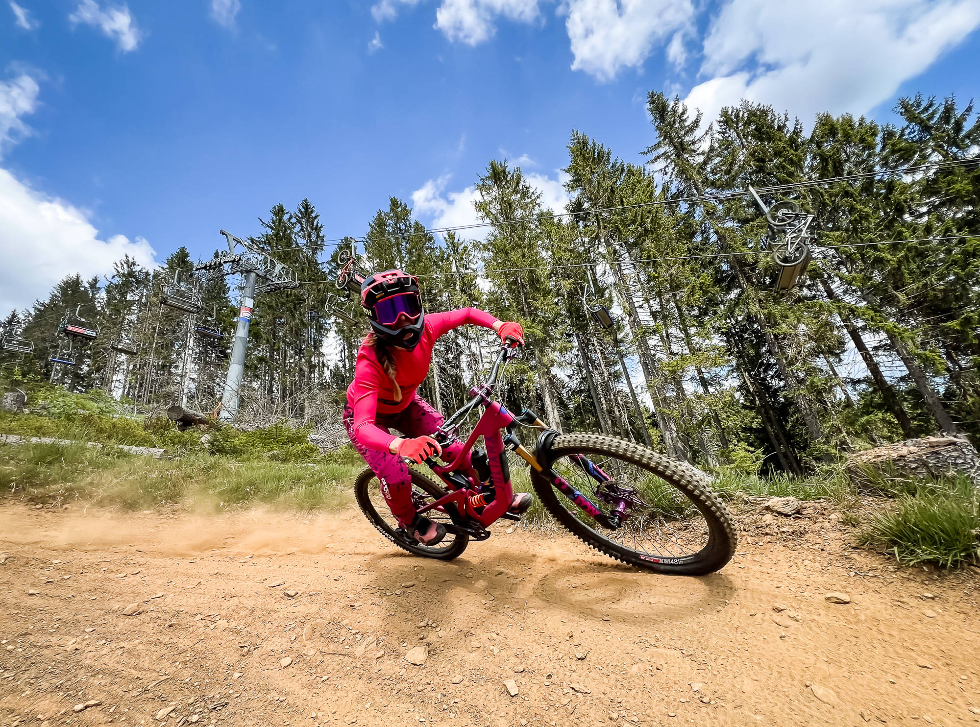 Tuto nejfrekventovanější špičáckou lajnu zpestřují technické prvky jako je táhlá dřevěná klopená zatáčka, jejíž radius je přívětivý pro širokou bikovou veřejnost, takže ji zvládne většina jezdců. Díky optimálnímu naklopení bych tuto zatáčku doporučila klidně i začátečníkům, kteří mají z echtovních „wallridů“ zatím respekt.