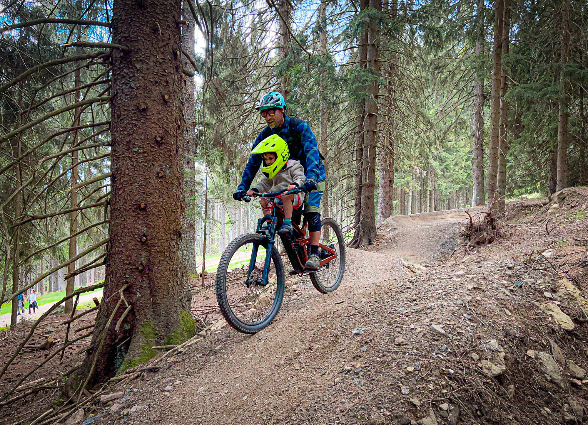 Na trati kvituji také množství malých až středně velkých skoků, které tu v rámci jízdy přeletíte, ani nevíte jak. Kdo ale skokansky naladěný není, může tu vše úplně bez obav přejíždět. To samozřejmě platí také o všech dalších překážkách, jako je skok přes potok, wallride a další dřevěné lávky, které se dají v pohodě objet. Pro zkušené bikery je to ovšem jeden z hlavních důvodů, proč Špičák navštívit - rozmanitost překážek všech druhů a velikostí.