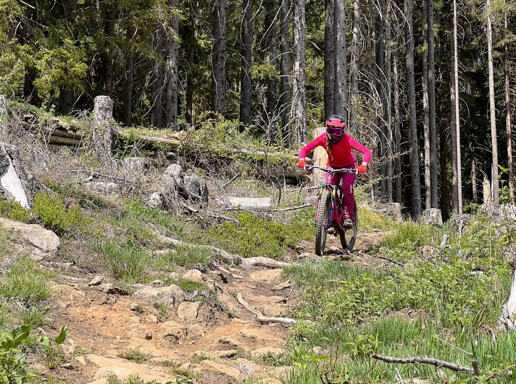 I když je Black Friday z velké části vyhlazená, stále je důvod, proč ji jet na kole s odpružením. Tlumič tu uvítáte na pár technických sekcích tvořených převážně kameny, vše ale odpovídá avizované střední náročnosti, takže nejde o nic nejetelného. Místy se nabízí i variabilita stopy, tedy jeden úsek jde projet dvěma alternativami, takže i jednu trať si můžete každou jízdu navolit trochu jinak.