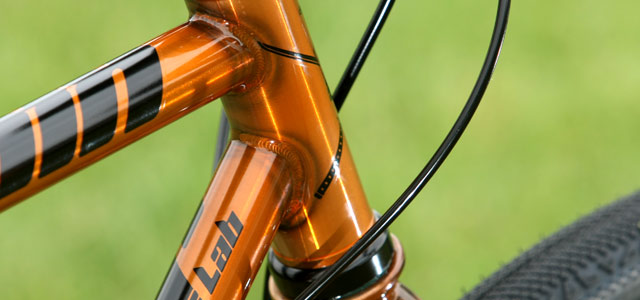 Hlavovka je tapered konstrukce, středové složení je šíře 68 mm. Zadní patky jsou kromě adaptéru pro uchycení kotoučovky vybaveny pevnou osou standardu 142x12. Nechybí ani dvojice úchytů pro košíky na bidony.