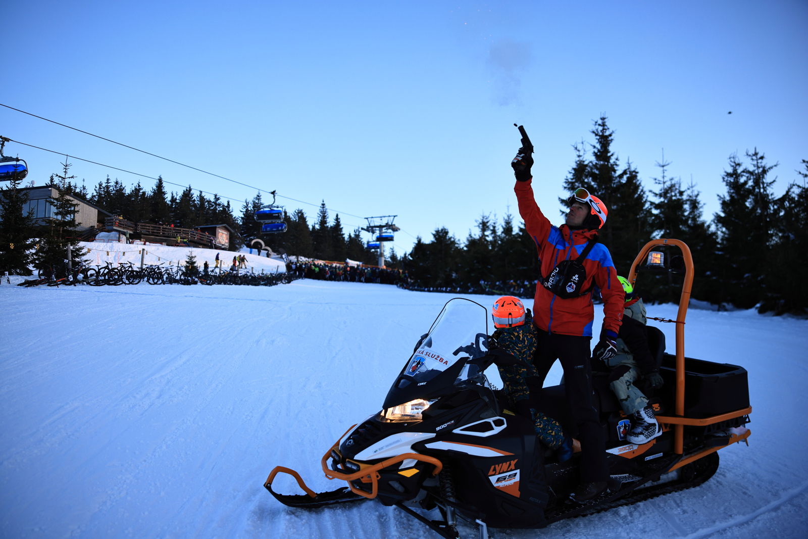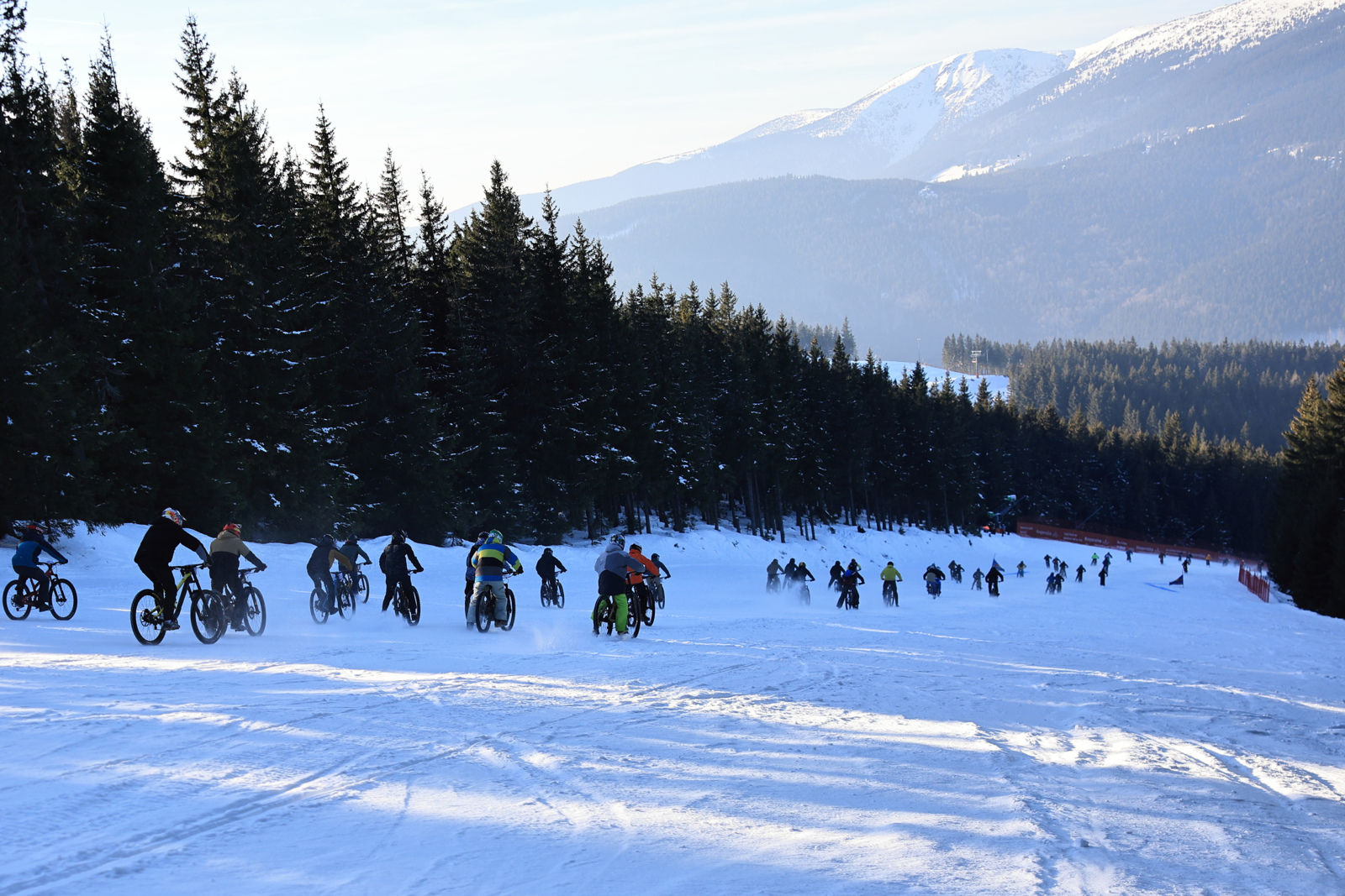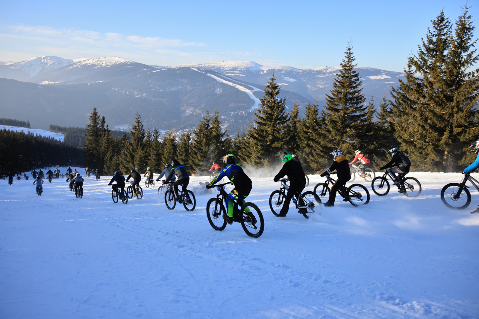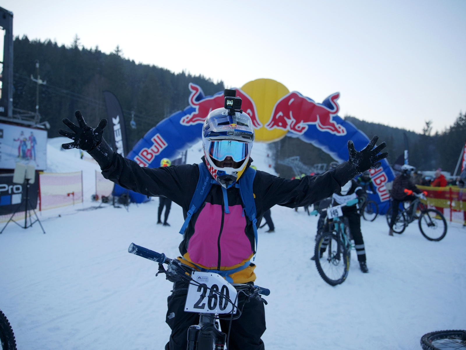 Areál Špindlerův Mlýn praská ve švech. Policie odklání dopravu. Závodníci se smaží v autech i dvě hodiny. Nervozita stoupá, a kdo může, sundává kola z auta a šlape za své. Jeden by řekl, dobrý warm up, ale co ti druzí? Ti už vesele chytají paprsky slunce do tváří, registrují se a najíždí první oblouky na tréninkovém spotu.