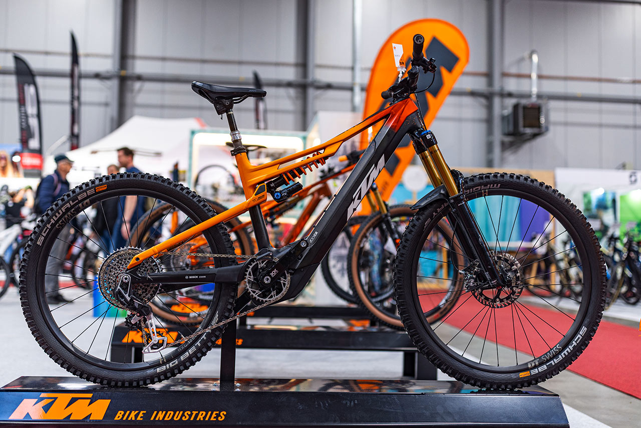 Letos sice KTM nemělo svou vlastní expozici, přesto získalo poměrně slušný prostor u jednoho z vystavovatelů. Návštěvníci si tak mohli prohlédnout nejen technicky do posledního detailu propracované ebiky, ale i závodní celoodpružený XC stroj osazený nejnovějším bezdrátovým RockShox Flight Attendantem.
