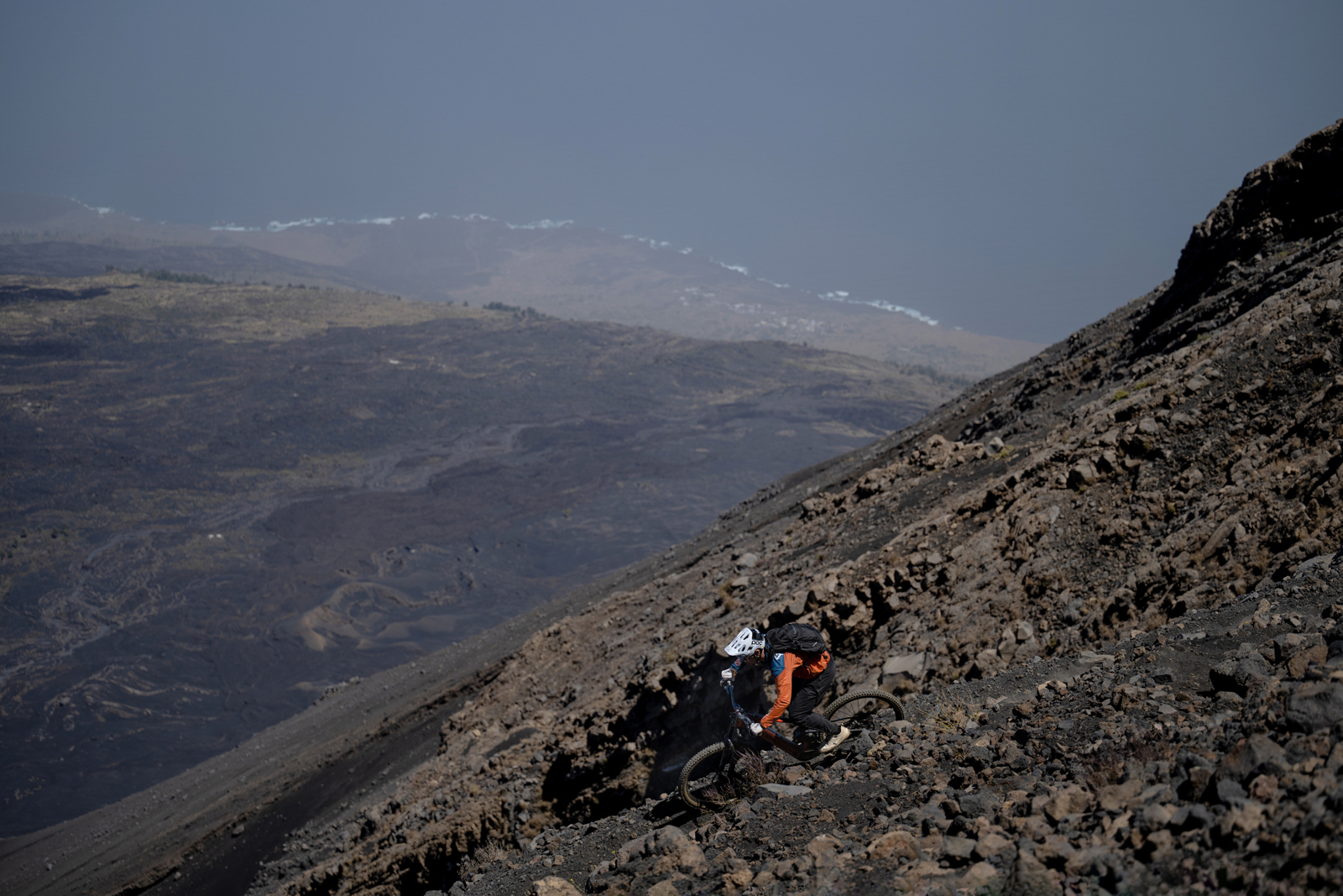 Z velkých kamenů se stal popílek a začal surf v lávovém prachu – při rychlosti až 80 km/h. Dunění ve spáncích, přetížení, hraní si s gravitací ze strany na stranu – jako když padáte nekonečnou černou pustinou. Nejlepší sjezd mého života,” vzpomíná Gaspi.