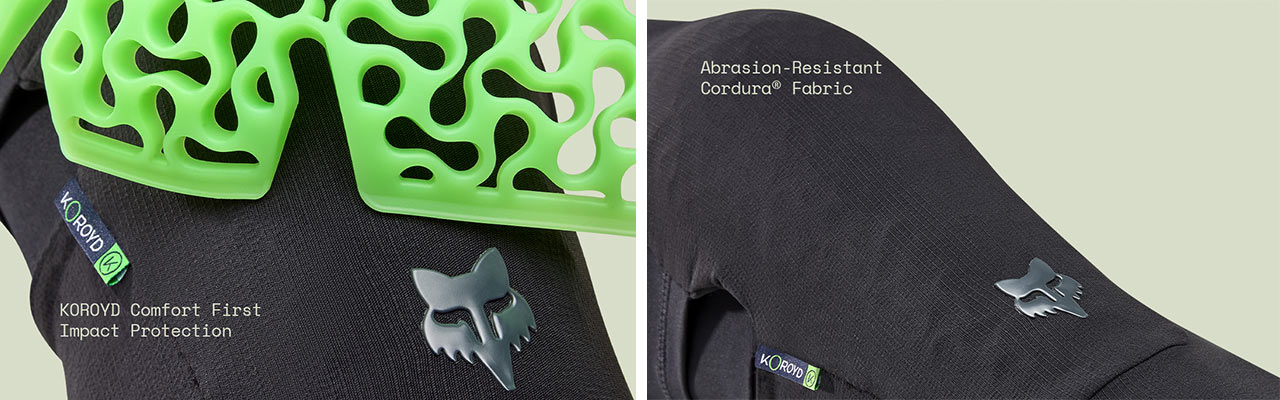 Spojení FOX a Koroid vedlo k vývoji chráničů kolen Enduro Pro Knee Guards, které byly navrženy speciálně pro horské cyklisty, kteří požadují špičkovou ochranu bez omezení komfortu a pohyblivosti. Tyto chrániče využívají pokročilou nárazovou technologii Koroyd, která díky své unikátní struktuře a složení materiálu poskytuje celodenní pohodlí bez ztráty ochrany.