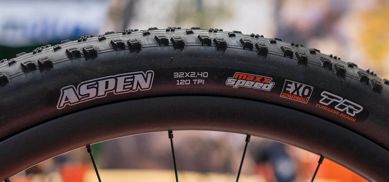 Maxxis Aspen ve 32" provedení byl vystaven společně s prototypem rámu španělské značky Unno, která jej prezentovala jako součást své vývojové platformy. Celé kolo díky obřím kolům působilo nezvykle vysokým a štíhlým dojmem, přesto stále připomínalo klasické XC nebo downcountry kolo. Maxxis potvrdil, že se jedná zatím pouze o výstavní prototyp a nikoliv o produkt připravený k sériové výrobě, ale zároveň nepopřel, že se tento plášť již testuje i v terénu. Vystavený plášť měl šířku 2,4", byl v základním Maxx Speed EXO/TR a nesl označení 50-686, resp. 32x2,40".