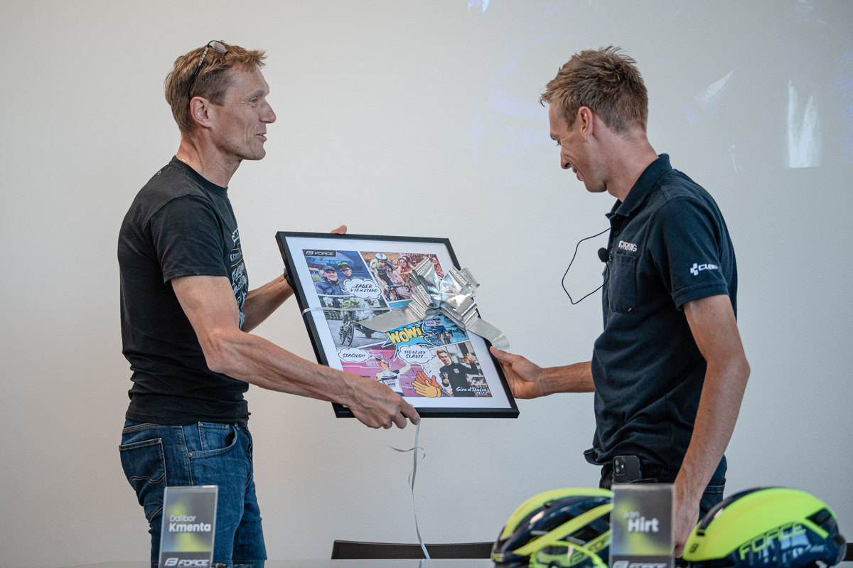 Když už jsme ale na setkání s vítězem královské etapy letošního Gira vyrazili do otrokovické základny společnosti KCK, která jeho tým Intermarché - Wanty - Gobert Matériaux zabezpečuje, nechtěli jsme jen tak zasunout nastřádaný materiál do šuplíku. Honza Hirt dostával netradiční otázky a fotograf Honza Brychta zase udělal zajímavé obrázky, a tak i vzhledem k probíhajícímu domácímu mistrovství republiky na silnici je jméno Jana Hirta více než aktuální...