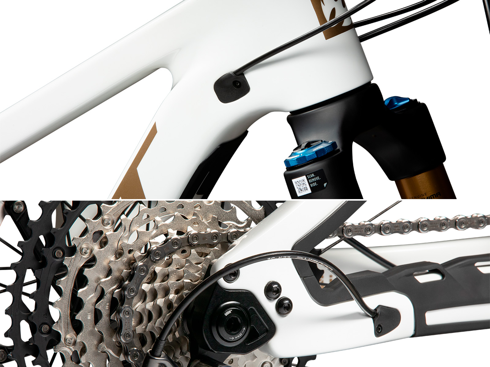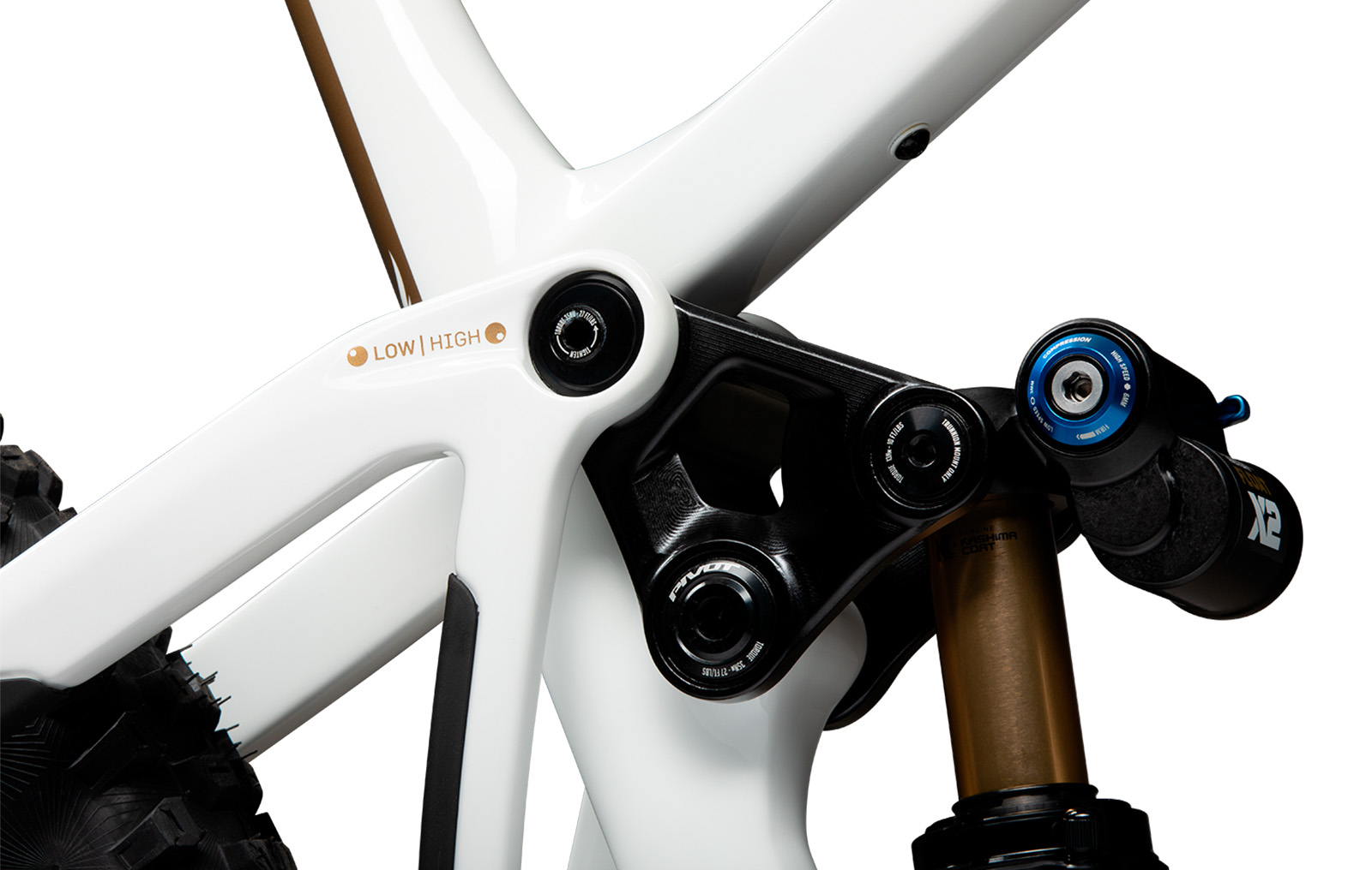 Již tradiční flip-chip umístěný na horním oku uchycení tlumiče má na starosti doladění geometrie. V poloze "high" pro divoké, technické tratě. V pozici "low" pro stabilitu v maximálních rychlostech. Současně umožňuje zvolit osazení koly čistě 29" nebo MX tak, aby byla zachována geometrie. Všechny velikosti kromě XS jsou kompatibilní s konfigurací 29" i MX. Pouze velikost XS je čisté MX - tato velikost nelze osadit 29" zadním kolem.