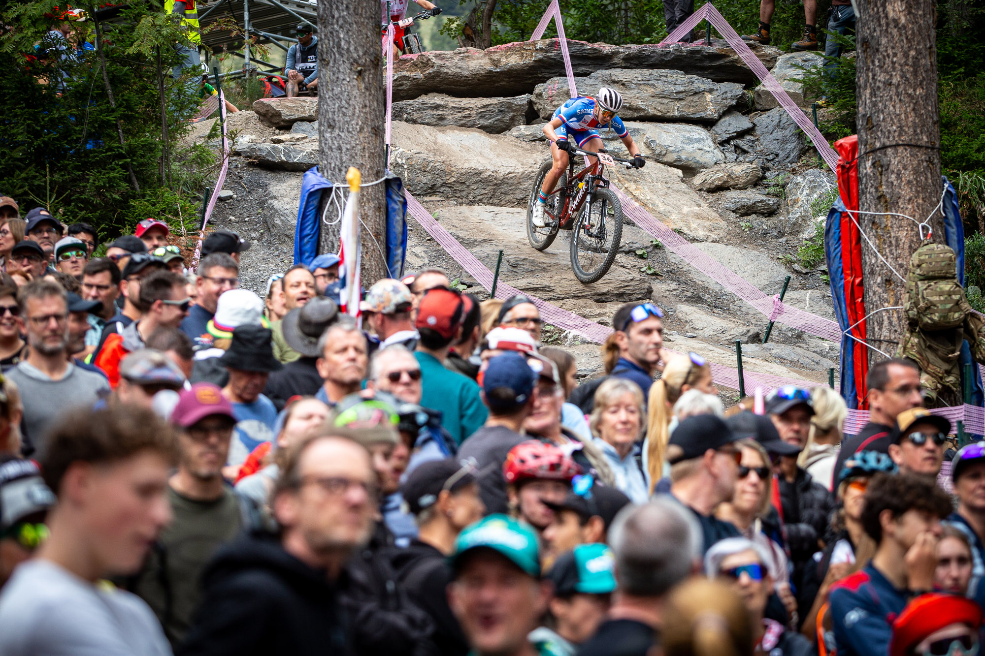 V pořadí 36. mistrovství světa bikerů pokračuje ve švýcarské Crans Montaně, sobotní program vyplnily závody cross country jezdců do 23 let a žen Elite. Souboj mladíků ovládl s takřka minutovým náskokem domácí favorit, týmový kolega Ondřeje Cinka, Finn Treudler. Stříbro získal Kanaďan Cole Punchard a třetí dojel dánský reprezentant Gustav Pedersen. Mistryní světa v elitní ženské kategorii se stala 31letá Švédka Jenny Rissveds, která za sebou nechala skokanku letošní sezony Samaru Maxwell a domácí hrdinku Alessandru Keller. Z českých reprezentantů skončil nejlépe Ondřej Novotný na 48. pozici, Patrik Černý obsadil 59. místo a František Hojka 69. příčku. Mezi ženami pak Adéla Holubová dojela na 37. místě, Jitka Čábelická byla klasifikována na 44. příčce.