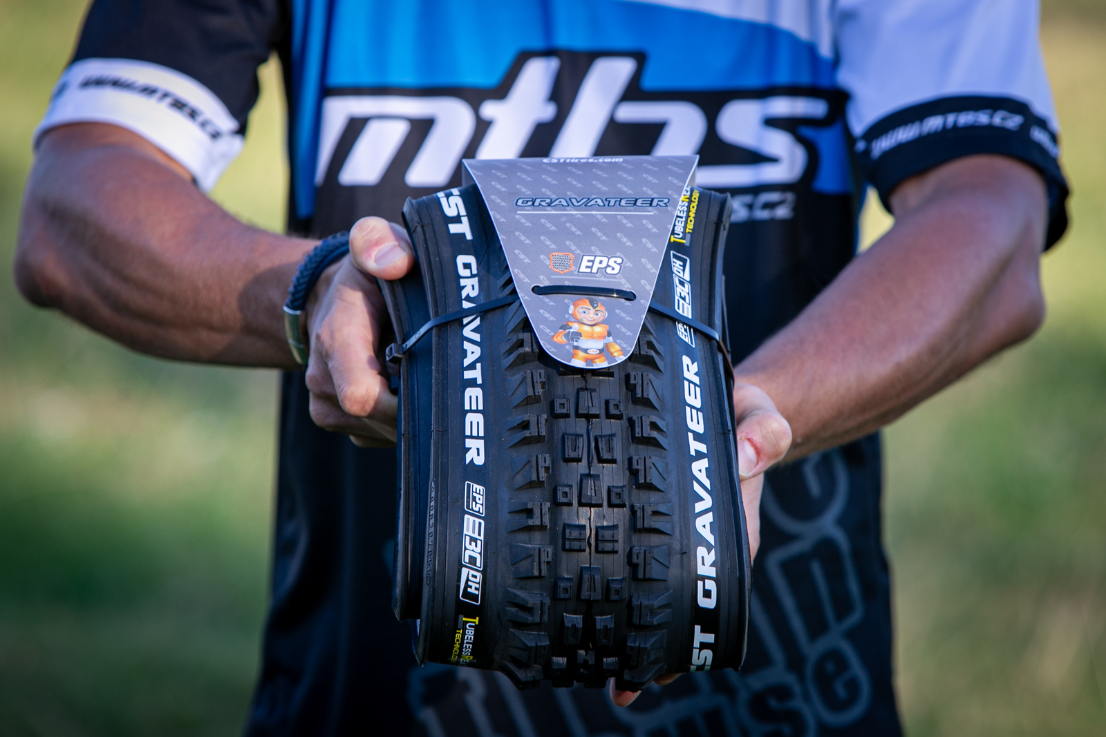 Takovéto označení nese Gravateer na svých bocích. Jak napovídá 3C, jedná se o použití 3 různých tvrdostí směsi na různých místech pláště. CST k tvrdostem směsi nedodává bližší informace a Gravateer je k dispozici, co se směsi týče, pouze v této konfiguraci. Nelze tedy, jako třeba u velmi populárního konkurenta v podobě Maxxis Assegai, vybírat z několika tvrdostí směsi. EPSje zkratkou pro ochranu proti defektu v podobě kevlarové výztuhy, která je umístěna nejen na bocích pláště, ale také pod jeho běhounem. DH je označení casingu, který se skládá ze dvou 60 TPI hustých vrstev složených přes sebe.