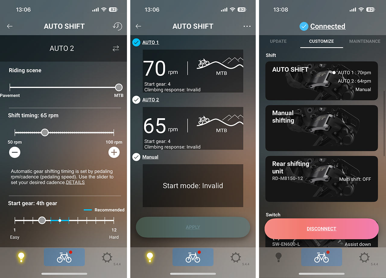 Základem pro co nejlepší fungování je zde instalace aplikace, v rámci které si můžete preference fungování řazení poměrně citlivě nastavovat. Obecně u Auto Shiftu platí, že funguje poměrně dobře při klidné jízdě ve výletním tempu, kdy při odlehčení systému na základě nastavených kadencí mění převody celkem logicky. A dokáže i jednu skvělou věc a to, že v okamžiku, kdy za jízdy přestanete šlapat, vám umí nachystat vámi nastavený převod tak, že sám protočí převodník a posune přehazovačku do patřičné polohy, aniž byste museli vy sami točit nohama.