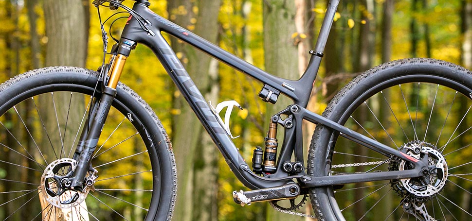 Základem nového čtyřkového Macha SL je celokarbonový rám pracující s klasickým "minimalistickým" XC zdvihem 100 mm. Pivot sice v zápětí doplňuje, že do rámu můžete bez problému osadit i 120mm vidlici, díky které se Mach4 víc ztrailovatí, ale my jsme v testu měli žiletkářskou verzi 100/100.