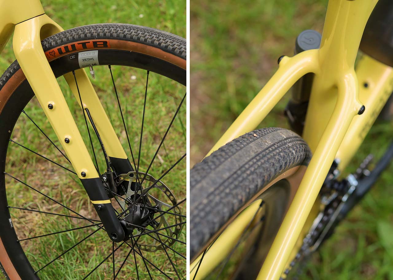Jak už jsem uvedl výše, v mém případě padla volba na pláště WTB Vulpine S (700x45c), které jsem měl jednoduše doma a momentálně neměly jiného využití. Mám je přitom rád, zejména pro jejich kombinaci velkého objemu, díky tomu více než solidního komfortu, zároveň i jisté stavby, slušného odvalování a zcela dostatečného záběru. Alespoň pro sušší části roku.