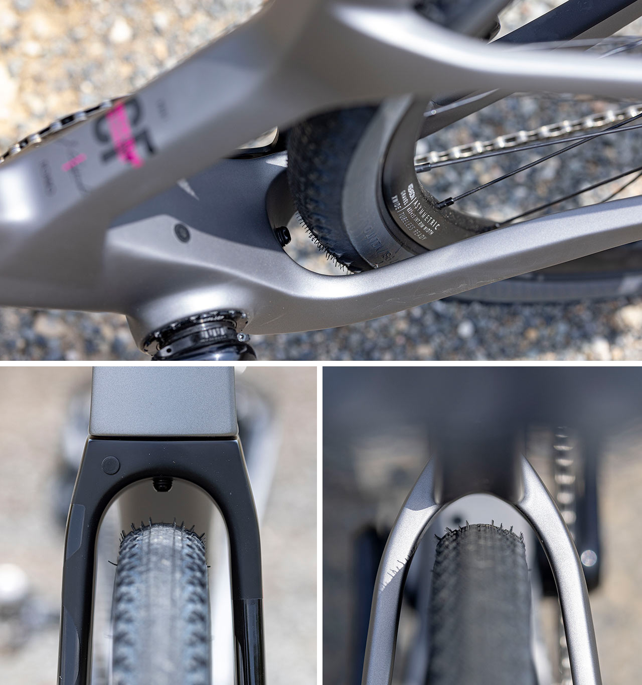 Díky absenci spodní části sedlové trubky je u středu poměrně dost místa pro zadní plášť při dosažení velice krátké zadní stavby. Nejužším místem je tu naopak napojení horních vzpěr zadní stavby do rámu, které udává také maximální papírovou šířku pláště, kterou lze použít 45 mm, přičemž sériově sem Rondo sází jen sedmatřicítky.
