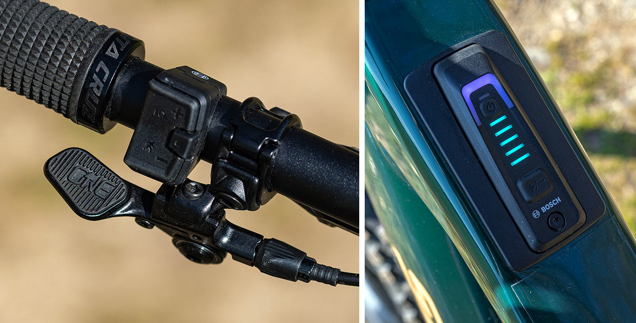 Co se týká samotného integrovaného pohonu Bosch, je potřeba počítat s tím, že kvůli minimalizaci profilu spodní rámové trubky není možné baterii z rámu jednoduše vyndávat kvůli nabíjení. Co naopak možné je, je možnost dopojit k tomuto kolu kompaktní battery extender, a to na pozici košíku na láhev, přičemž připojení probíhá kabelem do nabíjecího portu umístěného v rámci středové pasáže na levé straně rámu. Zdali to budete využívat, je otázka, protože uvnitř biku dostanete 600 Wh kapacitu baterie, která není na dnešní poměr nijak rekordní, ale zase přináší bonus v podobě váhové úspory zhruba 1 kg oproti alternativní Bosch baterii o kapacitě 800 Wh, kterou však do tohoto rámu kvůli jejímu většímu profilu nedostanete.