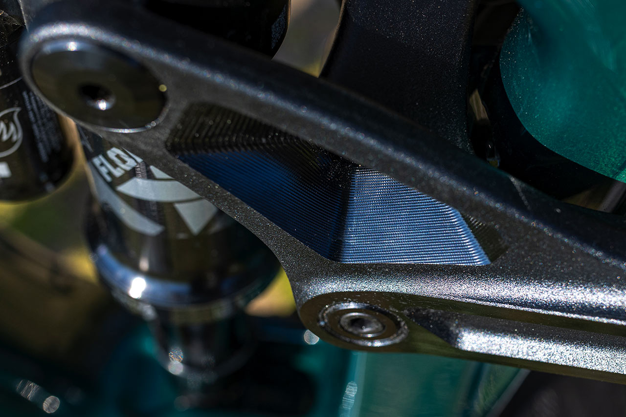 Precizně je provedeno také horní hliníkové vahadlo, v rámci kterého je vidět detailní frézování v rámci jeho vnitřního odlehčení.