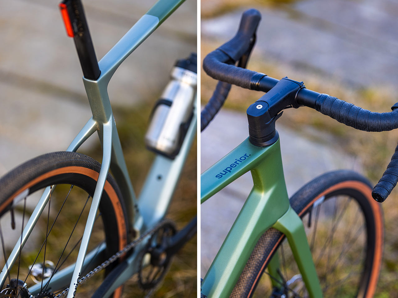 Co se samotného rámu a vidlice týká, kromě aerodynamického vylepšení dostal nově UDH zadní patku a především výrazně větší světlost pro použití plášťů až do rozměru 700x45c. Oproti předchozí generaci je zde opravdu o kus více místa v obou vidlicích, což je vidět na první pohled, především vpředu. Superior sériově osazuje „jen“ čtyřicítkové pláště, takže prostor kolem nich je prostě jasně patrný.