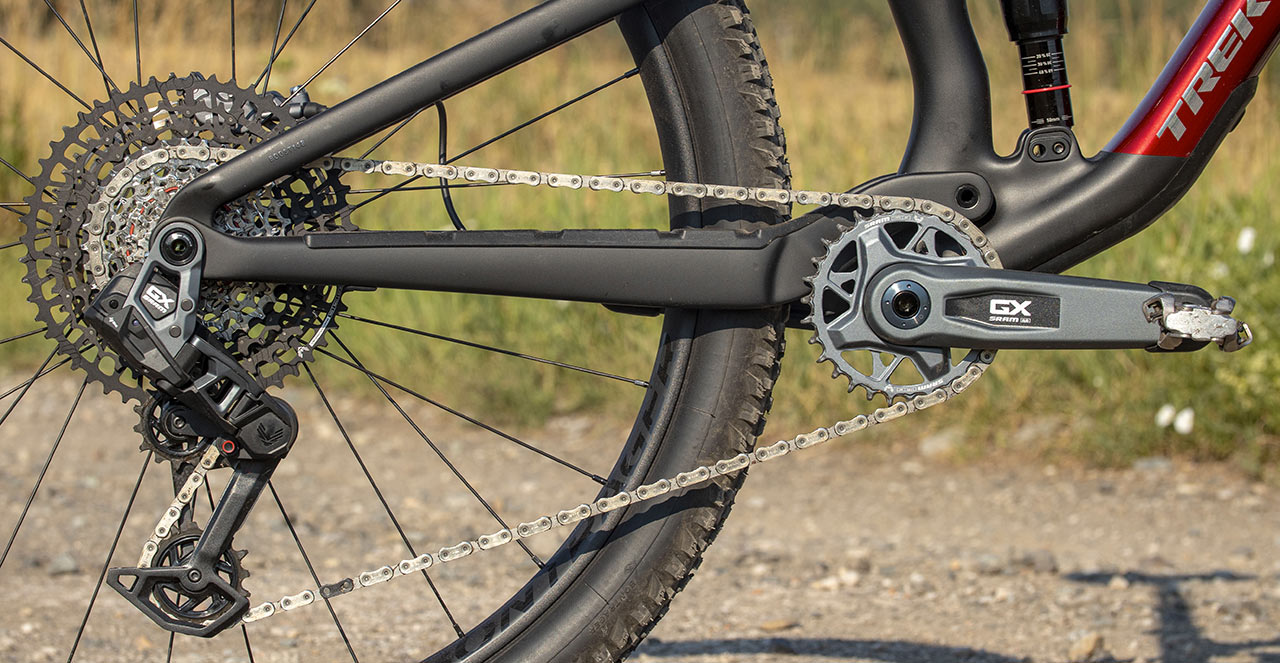 Zapletená kola a pláště snad nemůžou nést v případě Treku jiné logo než Bontrager. Zde se tedy točí hliníkové Bontrager Line Comp 30 nazuté do kombinace plášťů Bontrager Montrose RSL XT a Bontrager Gunnison RSL XT, s TPI 120 a v rozměru 29x2,4".
