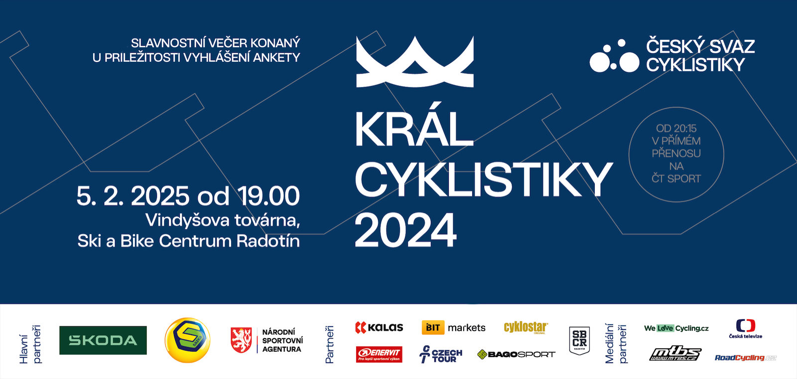 Hlavními partnery galavečera večera jsou společnost ŠKODA AUTO a.s. – generální partner Českého svazu cyklistiky, společnost Sazka a.s. – exkluzivní partner Českého svazu cyklistiky a Národní sportovní agentura – institucionální partner Českého svazu cyklistiky.