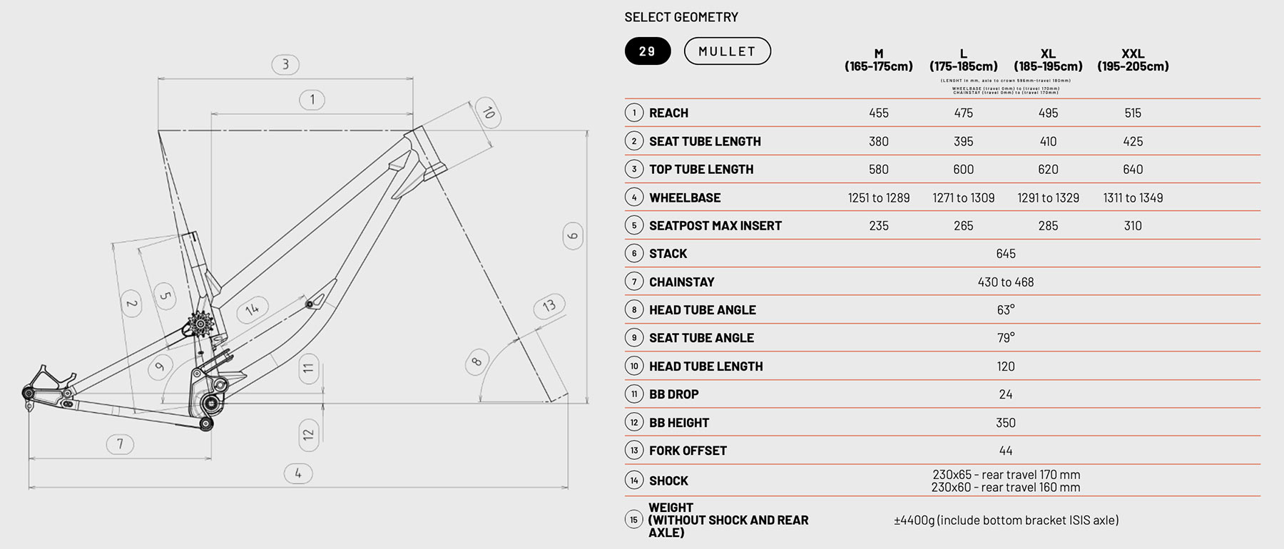 Ve standardu se počítá s tlumičem o rozměru 190×45 mm (případně 190×40 mm pro menší zdvih) a moderními detaily, jako je UDH patka nebo vnitřní vedení kabeláže v nerezových vodicích trubičkách. Rám je navržen pro 29" kola, ale Zoceli už pracuje i na verzi pro 32" kola!
