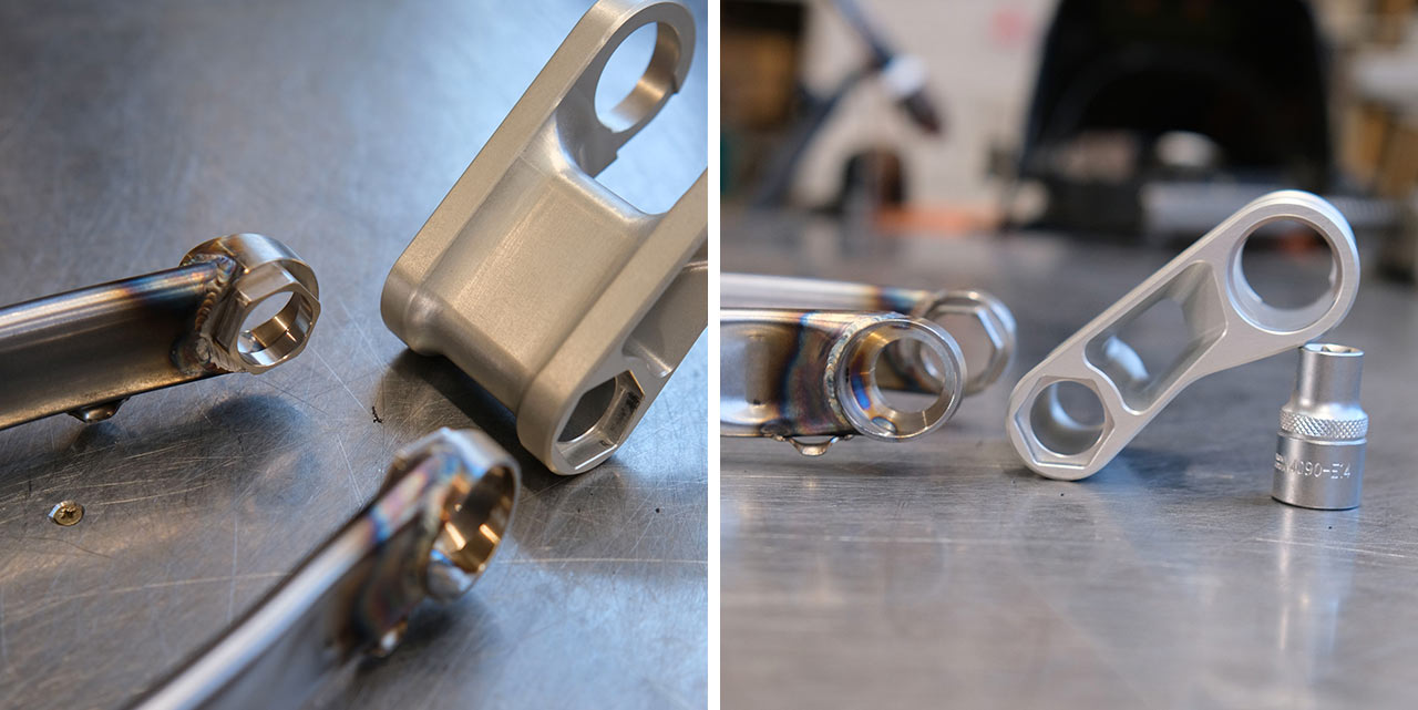 Důvodem tohoto řešení je snazší výroba tohoto důležitého detailu. Ten zajišťuje jak dostatek tuhosti zadní stavby, tak současně i prostupnost pro zadní kolo ale současně obchází nutnost složitého provařování v tomto místě. Benefitem tohoto hliníkového dílu je pak navíc ještě i nižší hmotnost, která se v tomto případě určitě hodí.