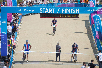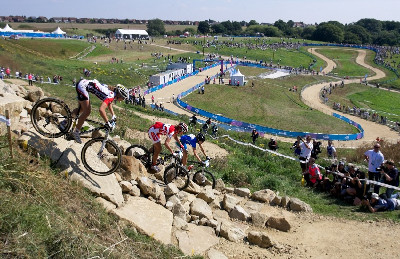 <p>Testovací závod na olypijské trati v Hadleigh Farm u Londýna ...</p>